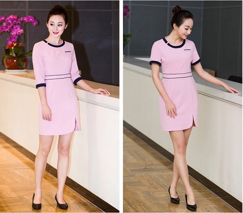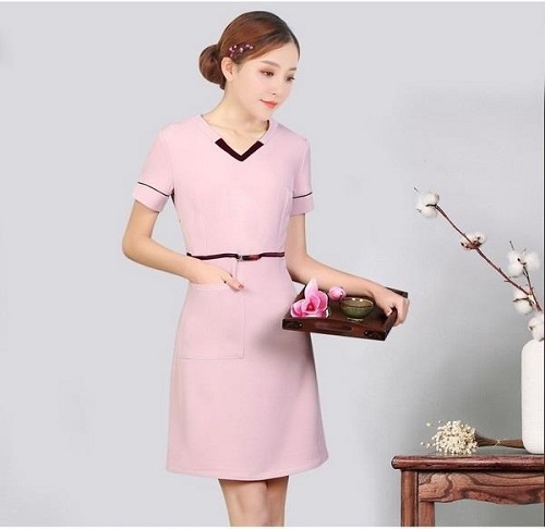 Ngoài sự kết hợp giữa áo và quần hoặc chân váy, váy đồng phục spa cho nữ cũng là lựa chọn lý tưởng cho các spa làm đẹp. Đồng phục váy có thiết kế đơn giản, tinh tế, giúp tôn lên đường nét và nét thanh lịch cho người mặc. Váy đồng phục thường là những mẫu bó sát để tạo cảm giác gọn gàng và chỉn chu. Với mẫu thiết kế này, thì bạn có thể lựa chọn đồng phục spa cho nam với các mẫu áo; và quần có thiết kế tương tự và màu sắc đồng điệu với trang phục nhân viên nữ.